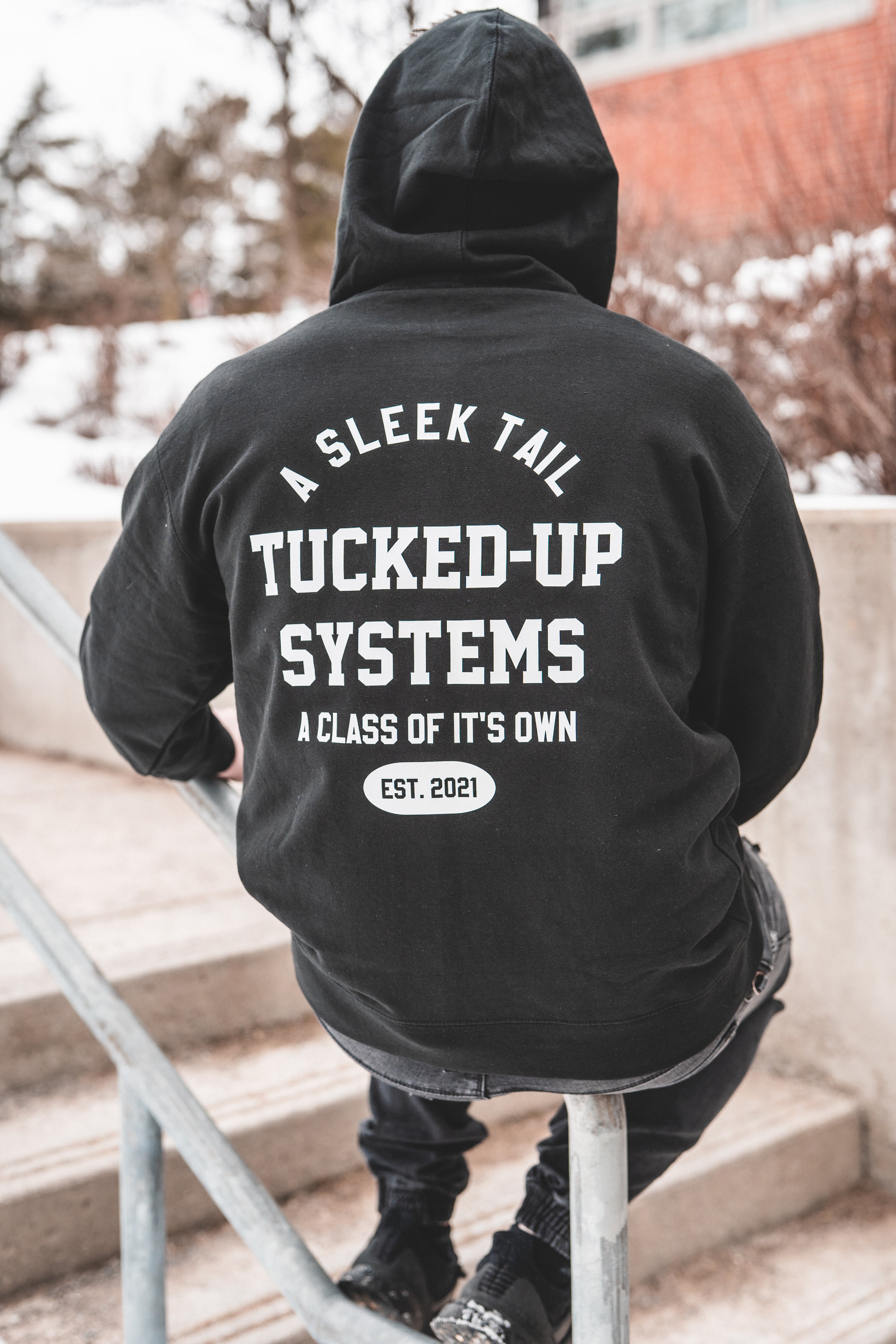 In love with your new sleek tail? Show support to Tucked-Up Systems by rocking this hoodie with your Tucked-Up Systems sleek motorcycle tail. Look stylish while riding your bike.